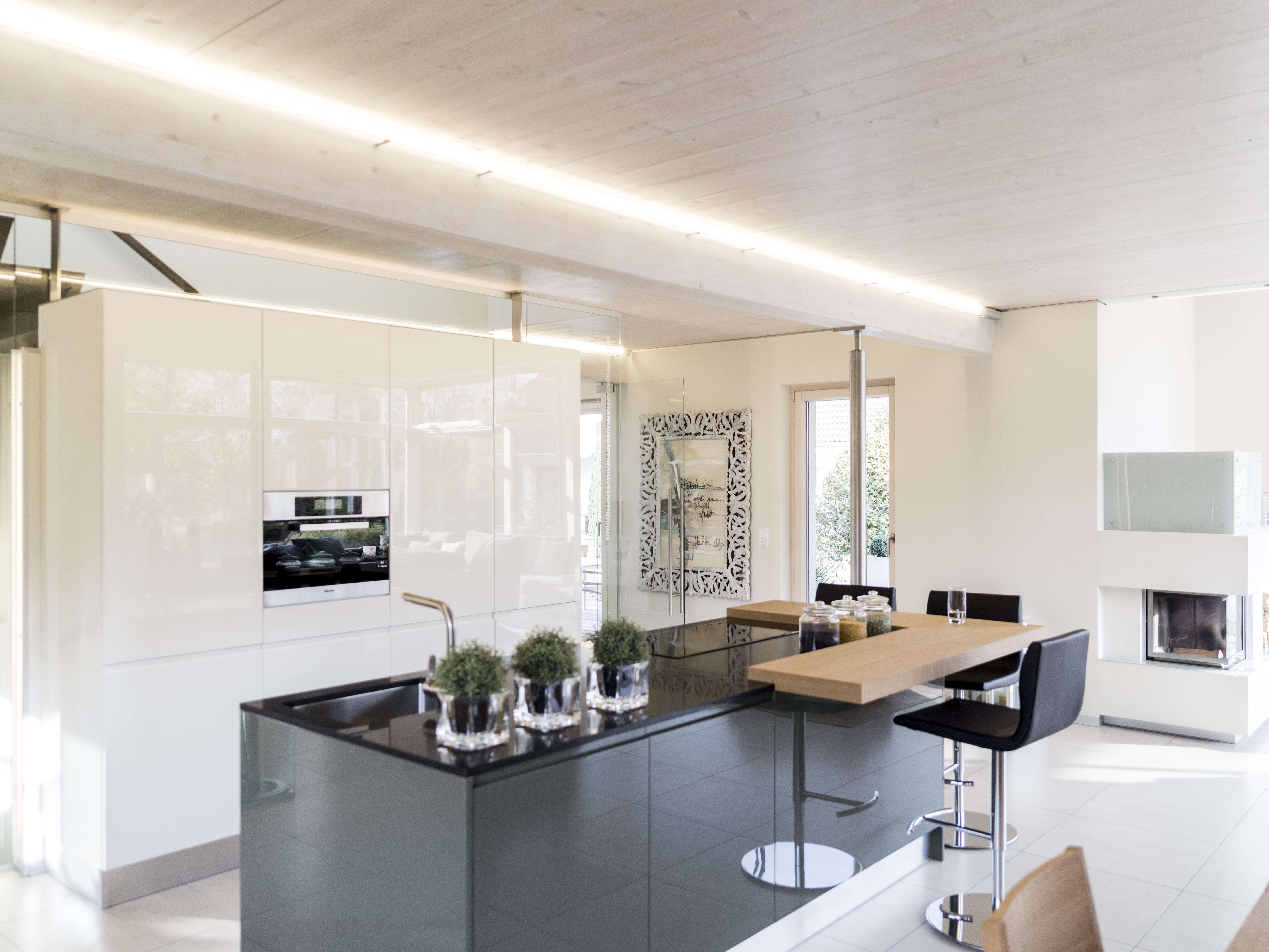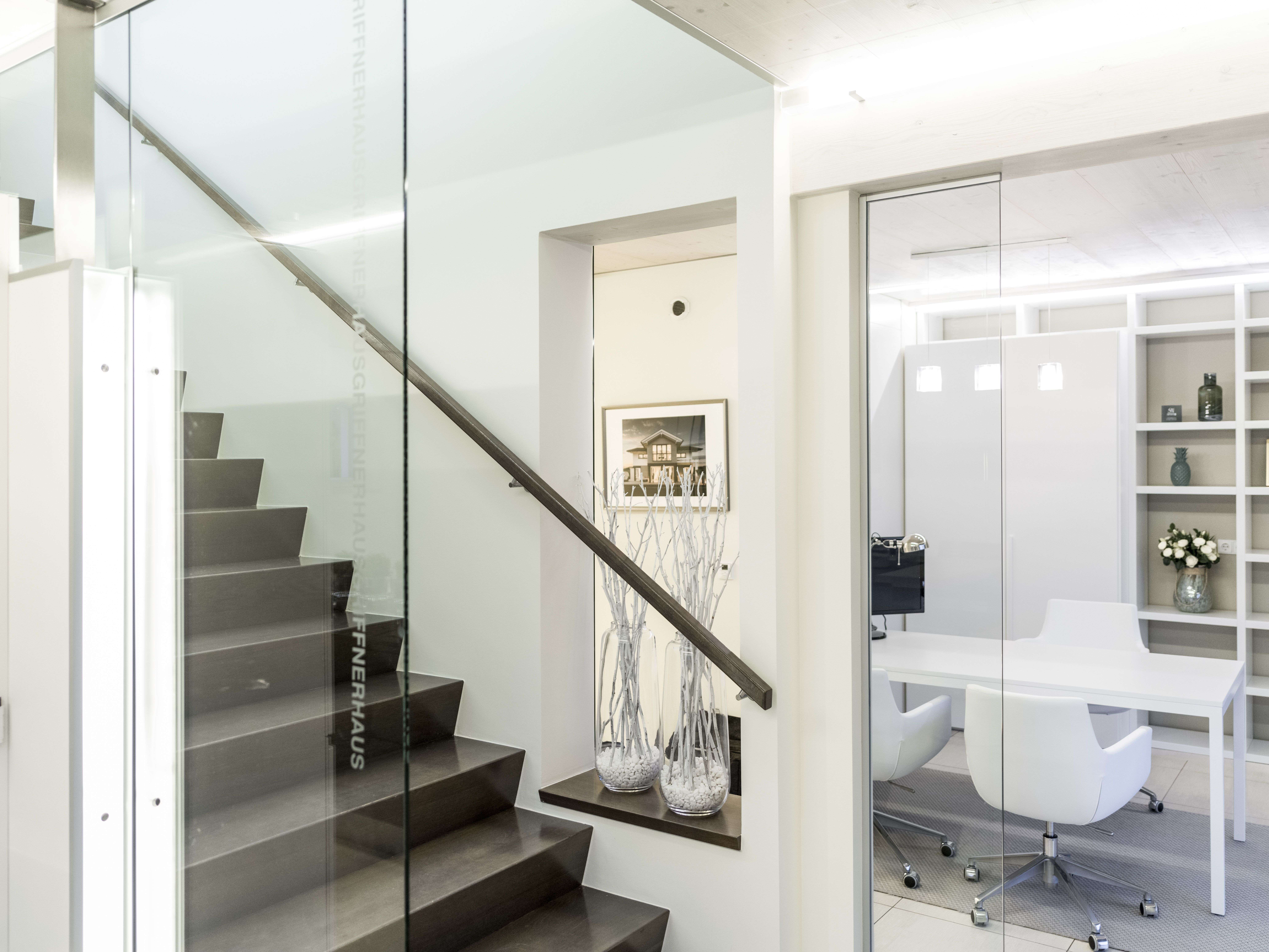 Ausgewählte Farben, klare Formen und moderne Linien, die dennoch Wärme und Harmonie ausdrücken, sind in einem GRIFFNER Haus wie der Mannheimer BOX ebenso wichtig wie der Bewohner selbst: Das Design ist charakterisiert durch elegante Formen und perfekt aufeinander abgestimmt Proportionen. Diese Linie setzt sich auch bei der Innengestaltung fort und bildet mit dem äußeren Erscheinungsbild der Fassade und deren Farbgestaltung eine harmonische Einheit ohne Kompromisse. Die stimmigen Proportionen und ausdrucksstarken Designelemente machen die GRIFFNER Box zu einem außergewöhnlichen Lebensraum, der seinesgleichen sucht. Wer ein Haus mit Keller oder zusätzliche Räume plant, hat mit dem von GRIFFNER patentierten Open-Space-Konzept nahezu unbegrenzte Planungsmöglichkeiten. Auch der Platz für einen eventuellen Fahrstuhl ist bereits vorbereitet.