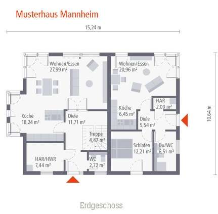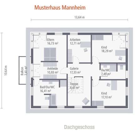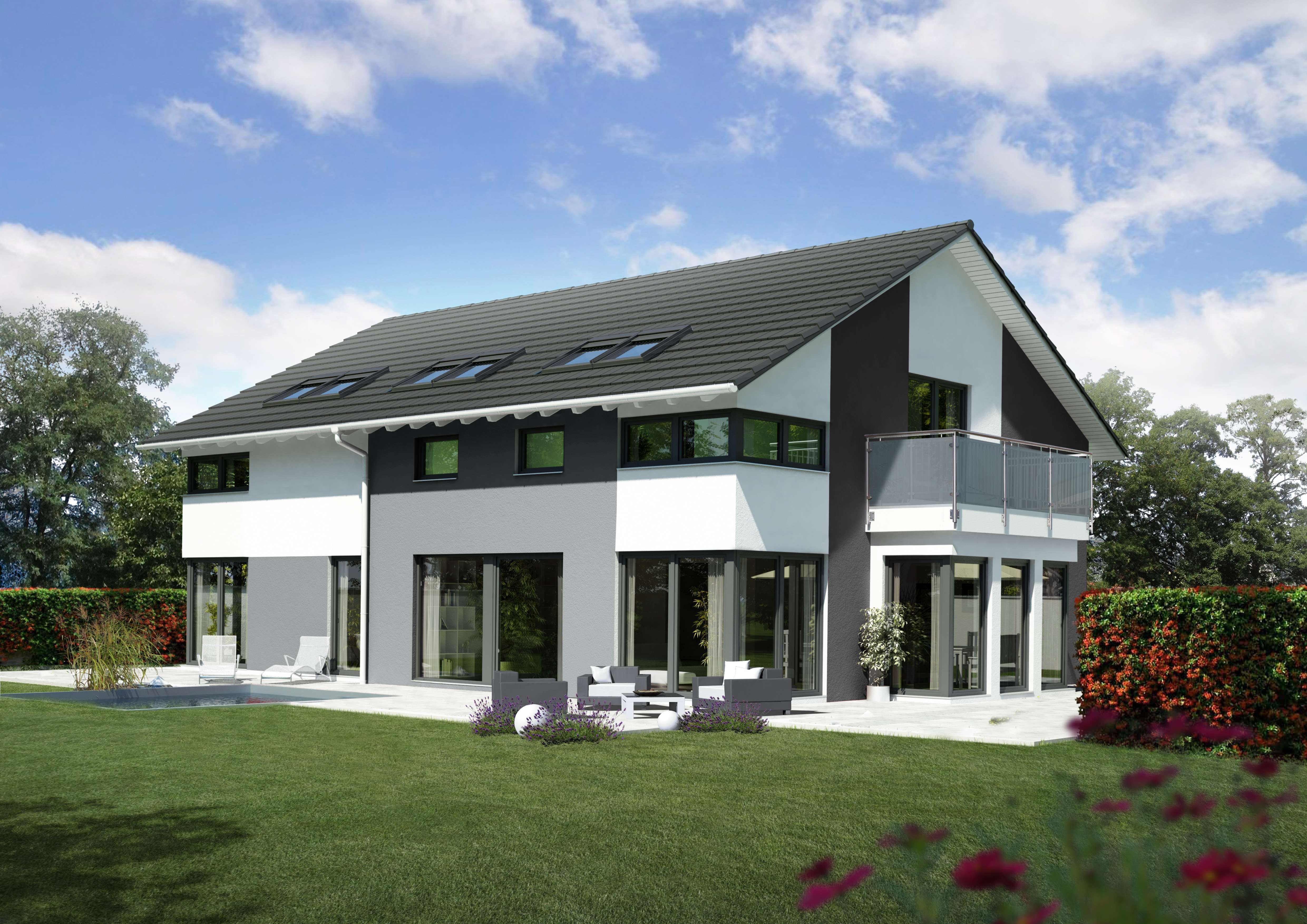 Das Satteldachhaus mit XL-Grundriss bietet vor allemeins: Freiraum! An das geräumige Haupthaus ist parterre die separate Zwei-Zimmer-Wohnung angegliedert. Beide Wohneinheiten im Erdgeschoss wirken dank bodentiefer Fenster und Schiebetüren einladend groß und hell. In der Eltern-Suite im Dachgeschoss verbindet die Ankleide Schlafraum und Badezimmer. Kinder oder Gäste finden hier ebenfalls ihren Platz. Und auch auf Büro und zusätzliches Duschbad muss nicht verzichtet werden. So geht wohnen!