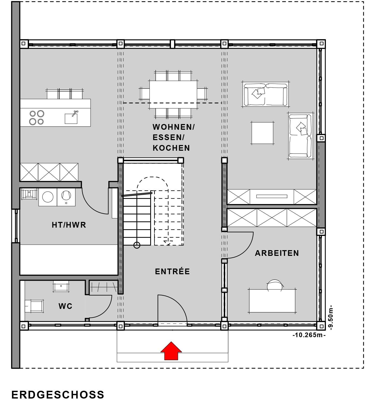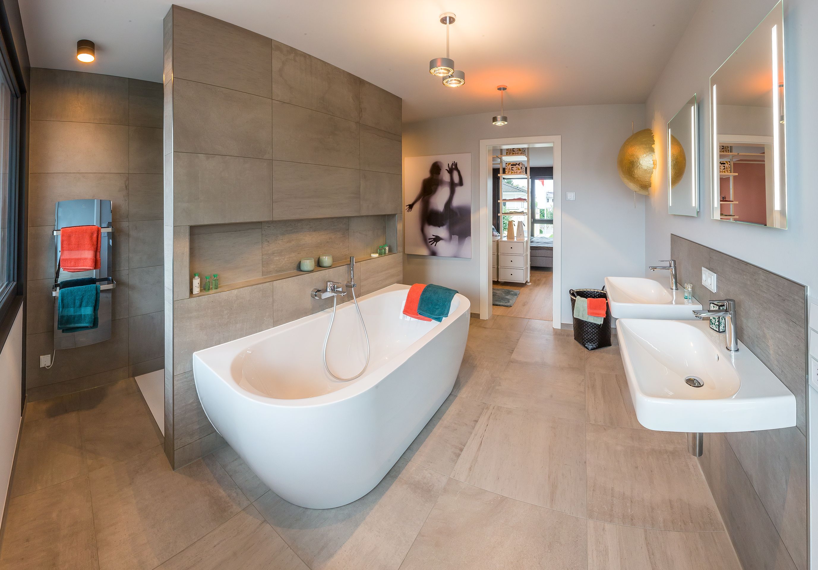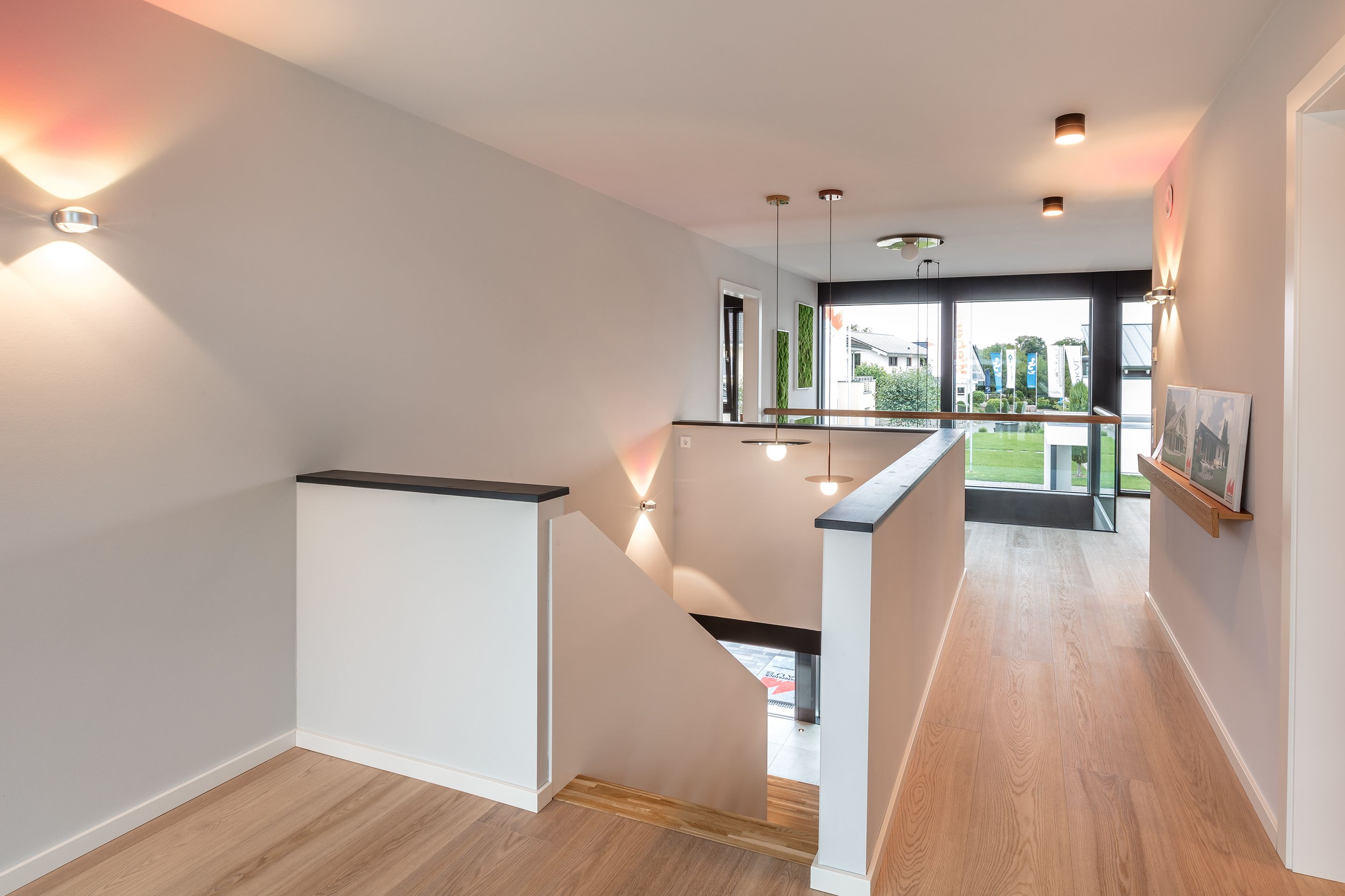 Mit einer Wohnfläche von 151 qm auf zwei Geschossen präsentiert sich „FUSION“ als elegantes, großzügiges, smartes und zugleich höchst energieeffizientes Einfamilienhaus – mit viel Glas, lichtdurchfluteten, hellen Räumen und jeder Menge Wohnkomfort. Die Kombination aus einer 6 kWp-Photovoltaik-Anlage inkl. Speicher mit einer Luft-Wasser-Wärmepumpe mit Kühlfunktion sowie kontrollierter Be- und Entlüftung mit Wärmerückgewinnung sorgt hier für einen minimalen primärenergetischen Bedarf, der weit unterhalb der geforderten Norm liegt und durch Energieeffizienzklasse A+ bestätigt wird.