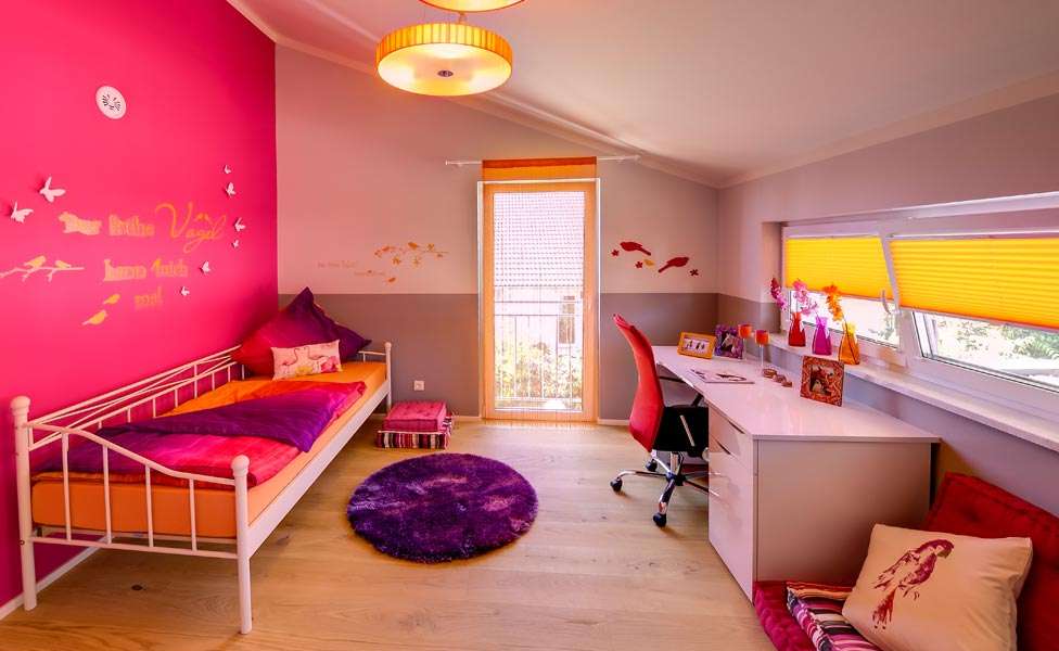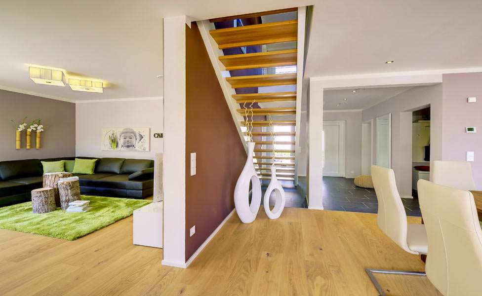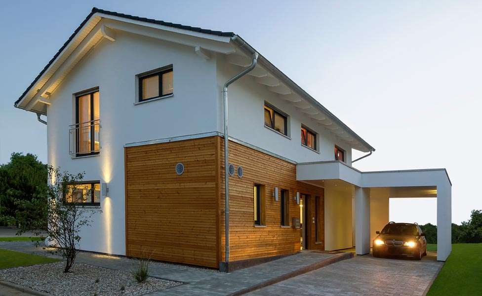 >Zudem besitzt das Einfamilienhaus eine moderne Gebäudeautomation. Verlassen die Bewohner das Fertighaus, können sie z.B. auf Knopfdruck alle Lichter abschalten. Verreisen sie, simulieren auf- und abfahrende Jalousien und ein variierendes Beleuchtungsschema ihre Anwesenheit.<li