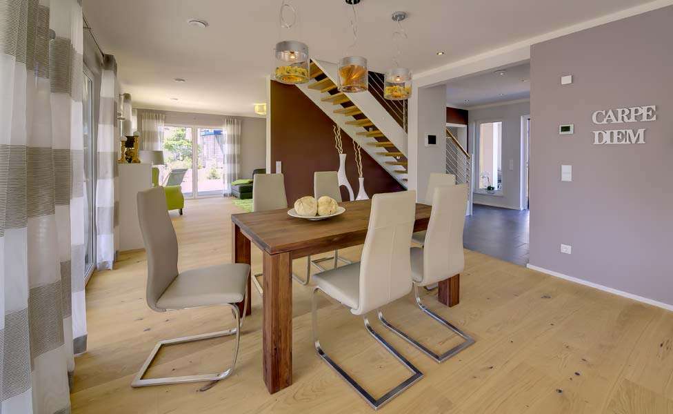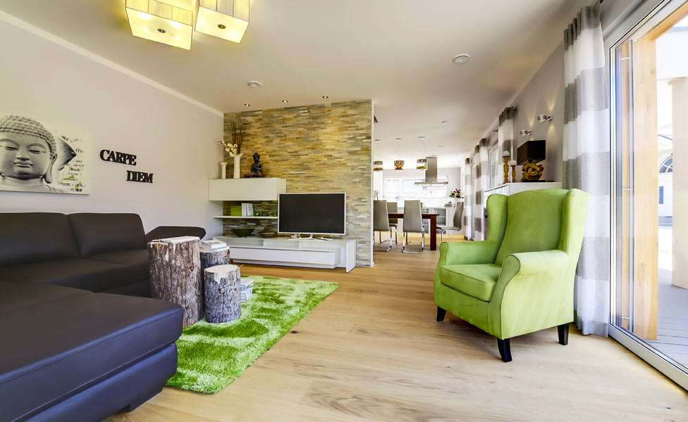 >Für weiteren Komfort sorgt eine moderne LED-Beleuchtung, die tolle Lichtstimmungen im Einfamilienhaus erzeugt und dabei äußerst sparsam ist.