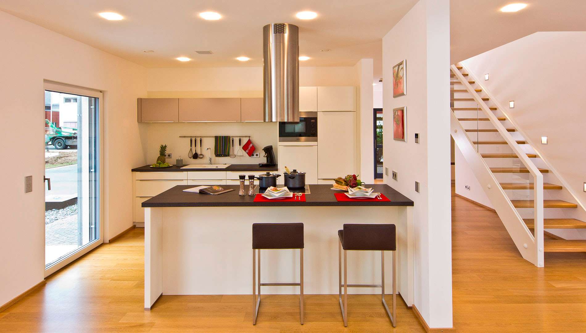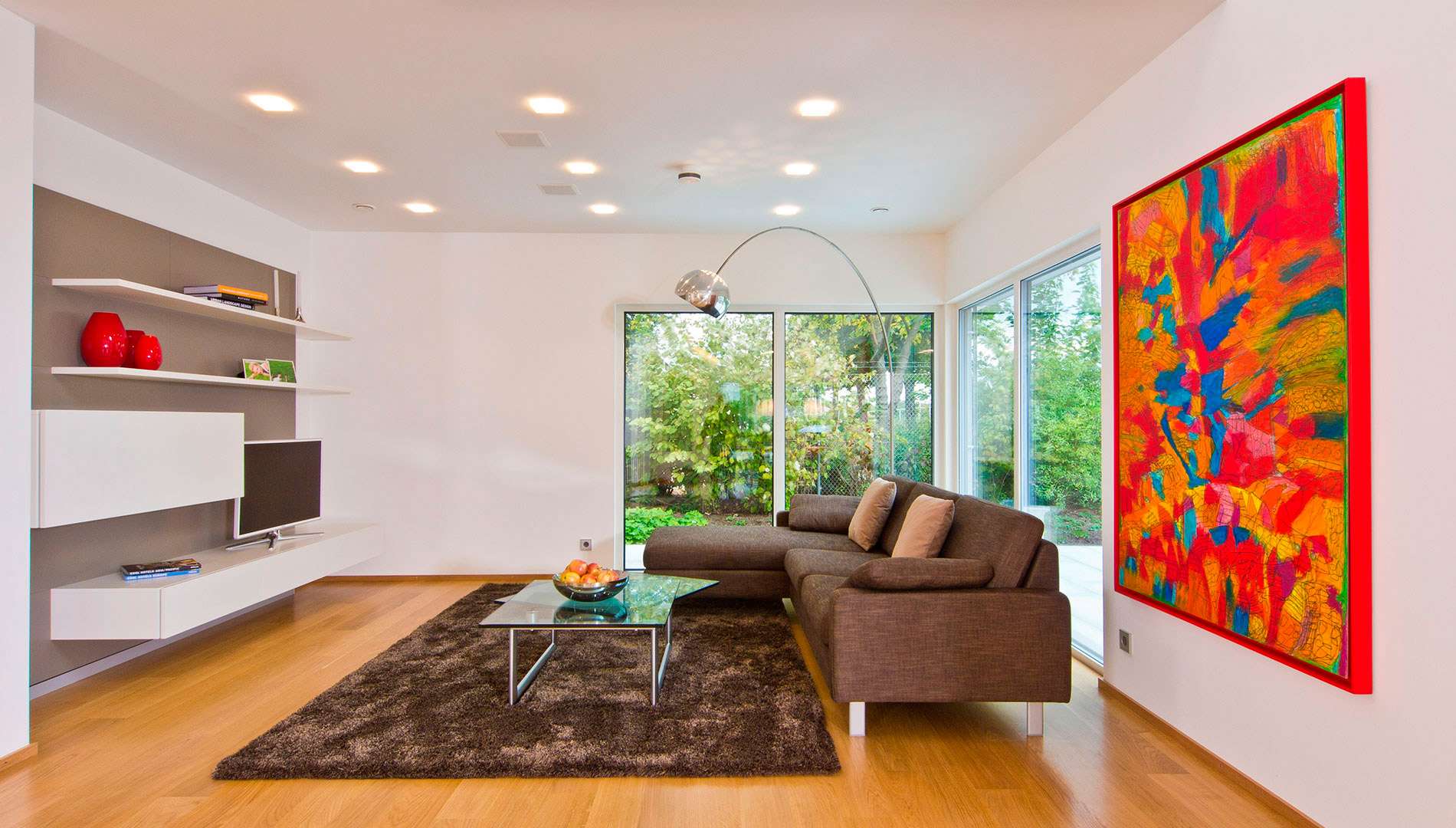 Gesteuert wird die Haustechnik über einen interaktiven Touchscreen. So können alle wichtigen Funktionen im Sonnenenergiehaus Future intuitiv bedient werden. Im Hintergrund der Steuerzentrale arbeitet ein KNX-Bus-System, über das sämtliche Hauskomponenten miteinander vernetzt sind. So können Sie Licht, Jalousien und Heizung steuern – aber beispielsweise auch den Morgenkaffee via Steckdose programmieren oder das Bad per Smartphone-Anruf vorheizen.