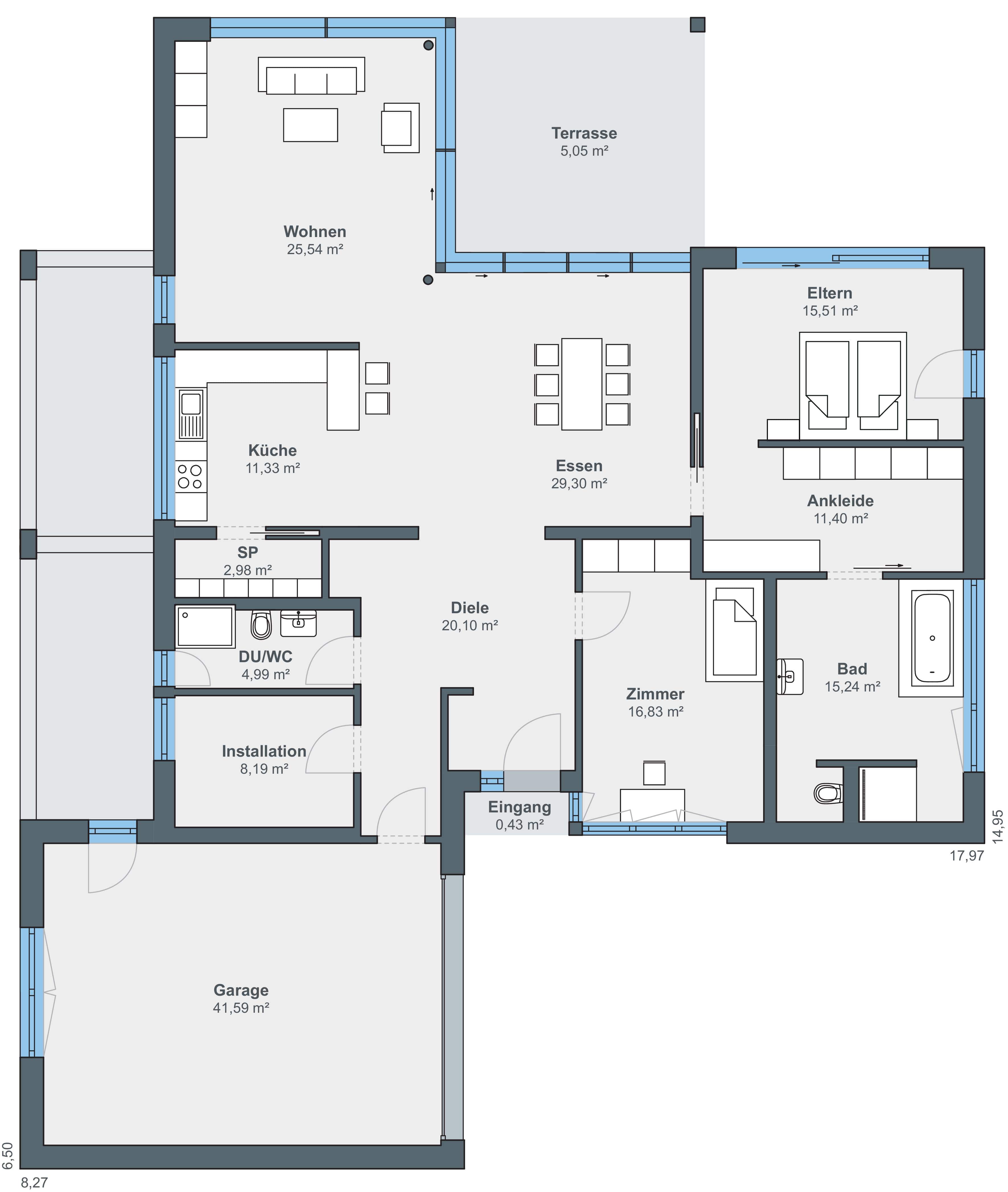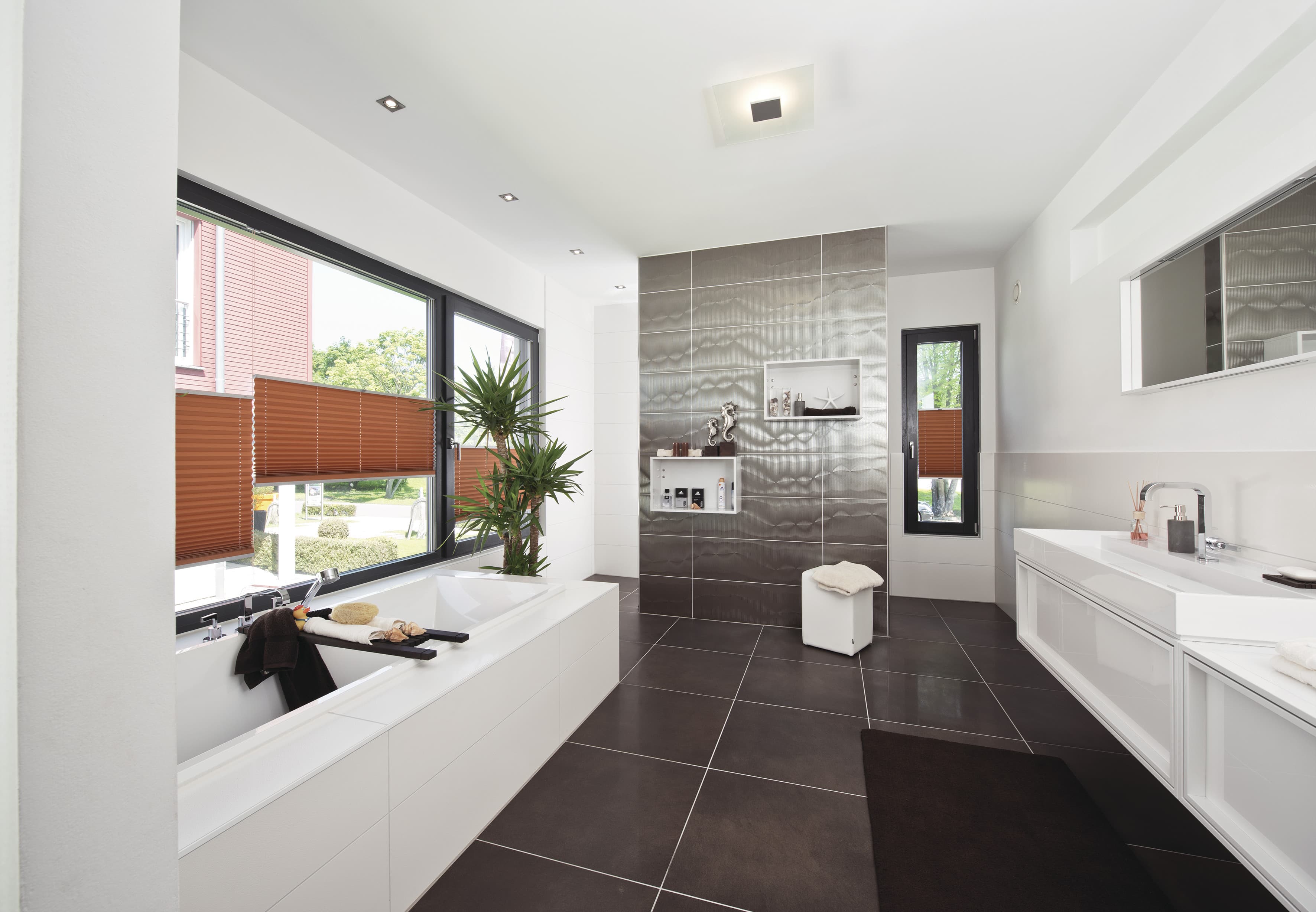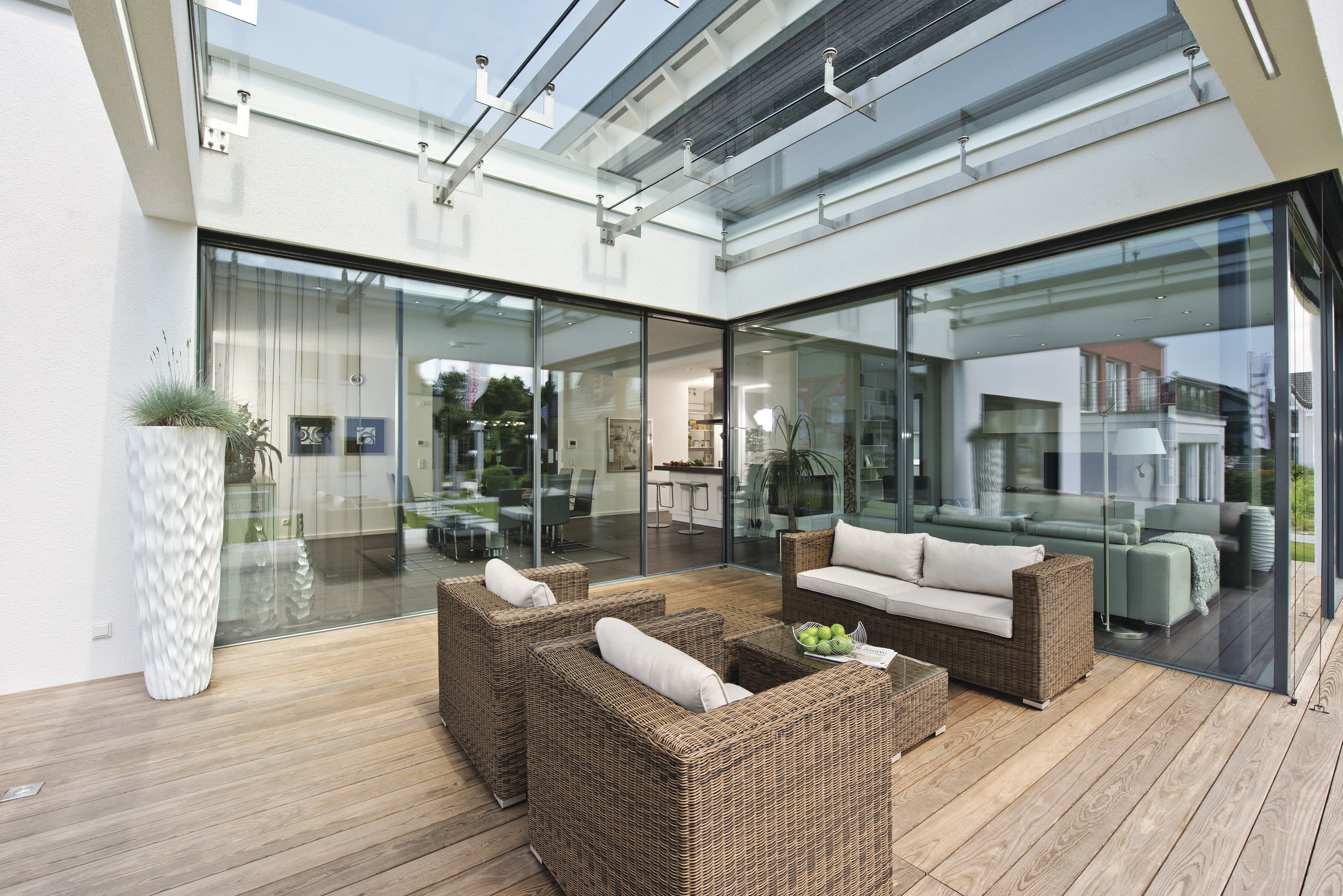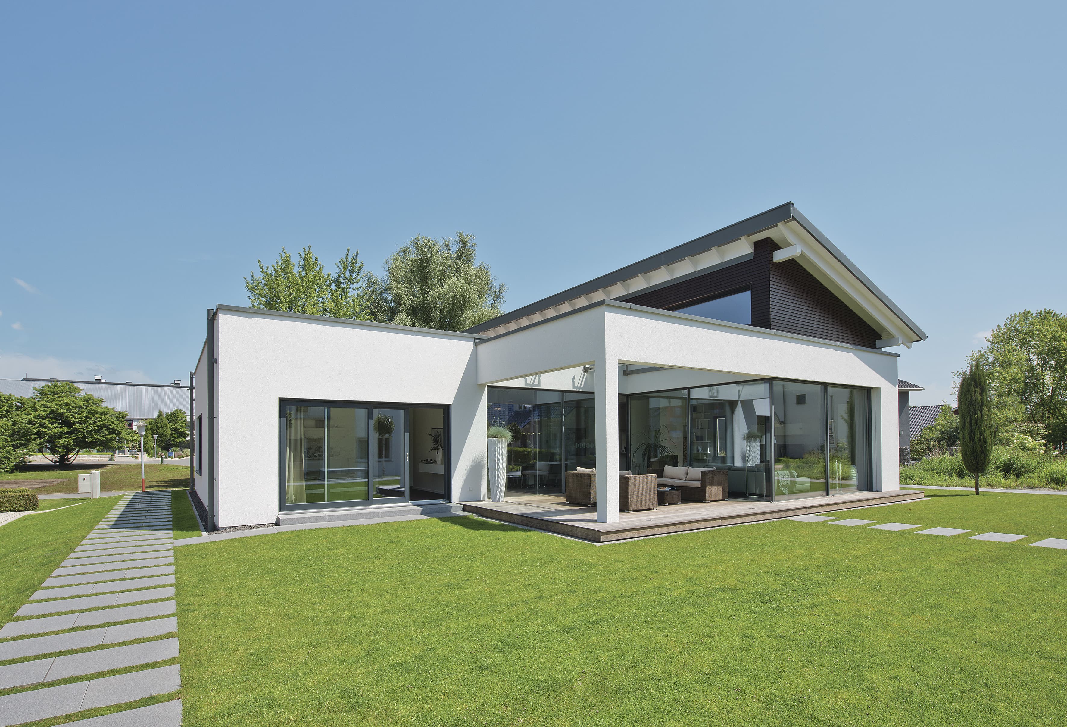 In diesem WeberHaus nach dem Wohnkonzept ebenLeben vereinen sich Komfort und Ästhetik auf perfekte Weise. Kein Wunder! Das frei geplante Architektenhaus besticht mit einer barrierefreien und komfortablen Bauweise. Stilvolles Design und ein offen gestaltetes Raumkonzept lassen jetzt und in Zukunft pure Wohnfreude aufkommen. Auf nur einer Wohnebene genießen Sie Freiraum und Komfort in ihrer schönsten Form. Raumhohe, rahmenlose Glasschiebetüren im Terrassenbereich lassen viel Tageslicht ins Haus und schaffen eine angenehme Atmosphäre.