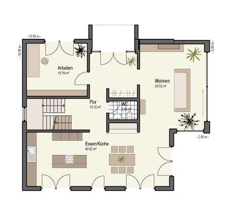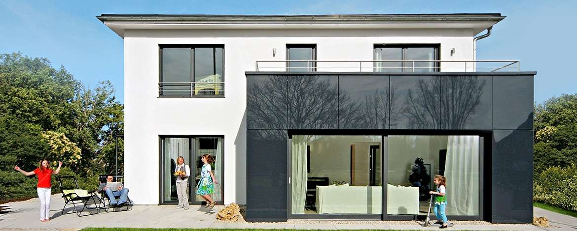 Stilvoll, klassisch und klar zeigt sich die Stadtvilla Mannheim. Eine Schiebewand trennt bei Bedarf das großzügige, offene Erdgeschoss in Koch-Ess-Raum und Wohnzimmer. Mehrere Türen führen nach draußen auf die große Terrasse, die das Haus auf zwei Seiten umläuft. Auch im Obergeschoss der 196 Quadratmeter großen Villa sorgen tiefe Fenster für viel Licht. Komfortable Extras sind ein Ankleidebereich für das Schlafzimmer und ein hochwertiges Wellness-Bad.