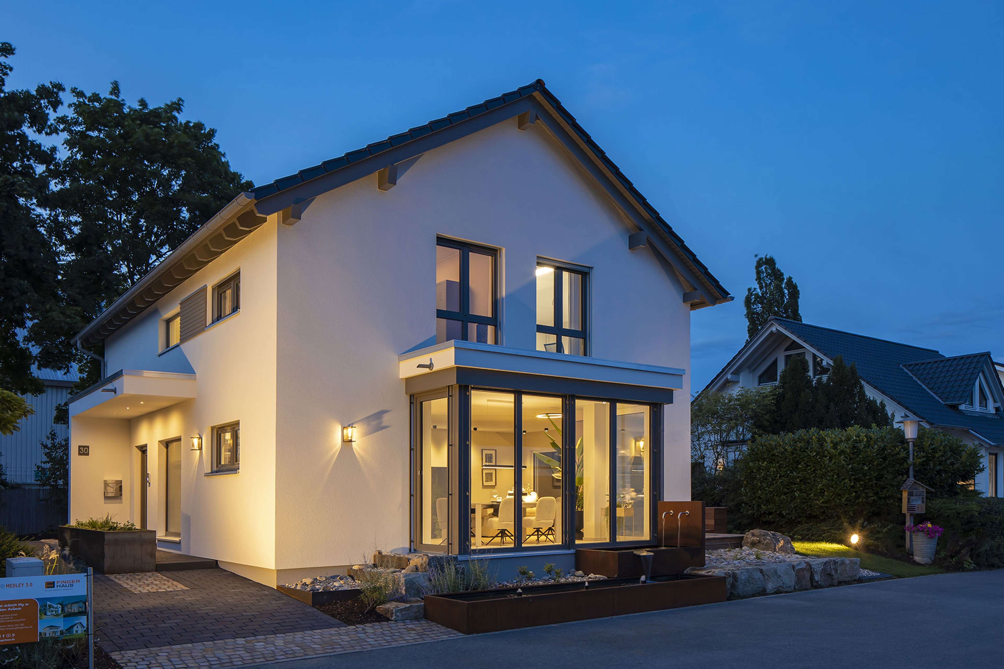 Das Finger-Haus MEDLEY 3.0 in Mannheim zeigt auf ca. 180 Quadratmetern eindrucksvoll, wie moderne, facettenreiche Architektur aussehen kann: Zwei Erker, ein Wintergarten und eine schöne Fassadengestaltung machen das Haus zu etwas ganz Besonderem. Nicht nur außen: Auch der Grundriss überzeugt mit durchdachten Ideen auf jeder Etage.