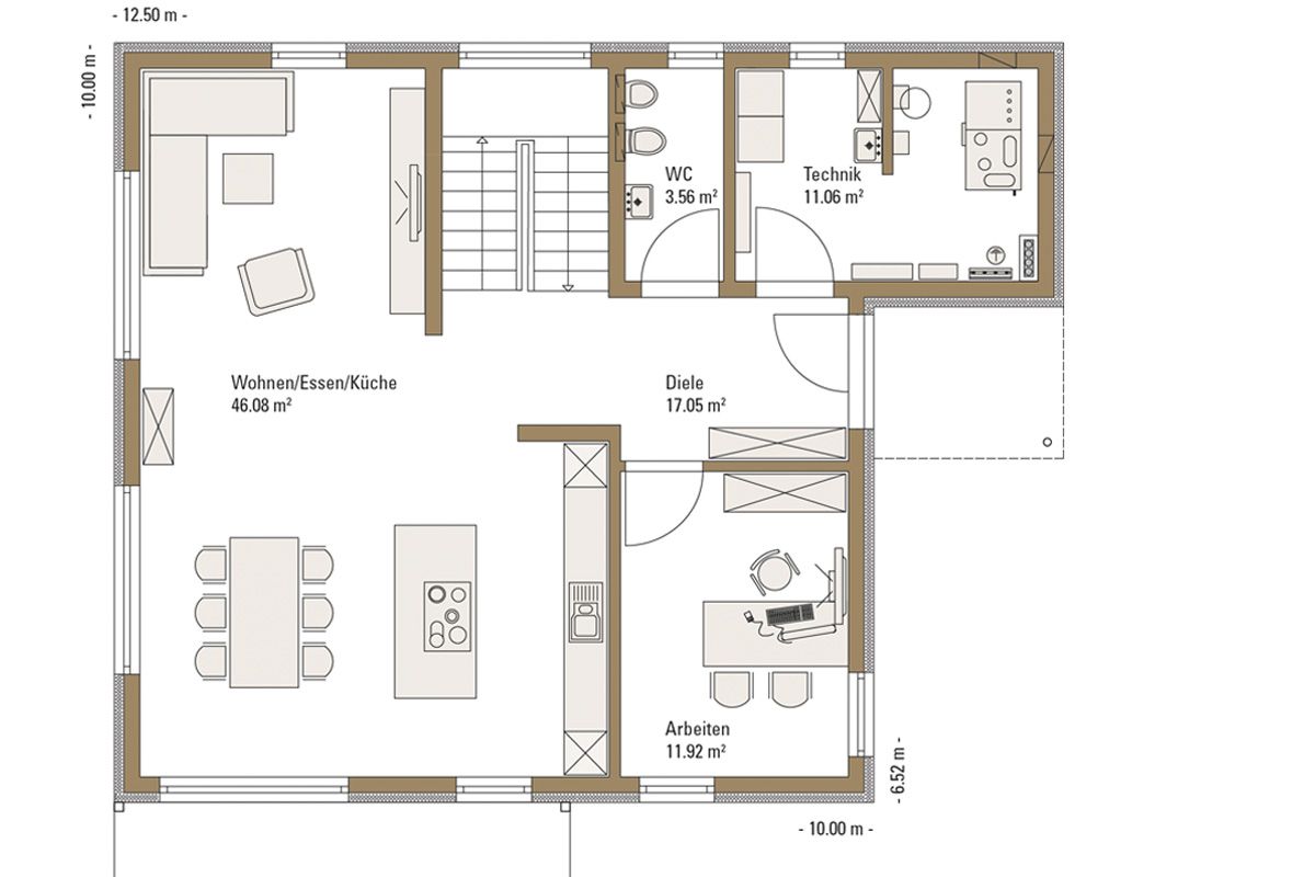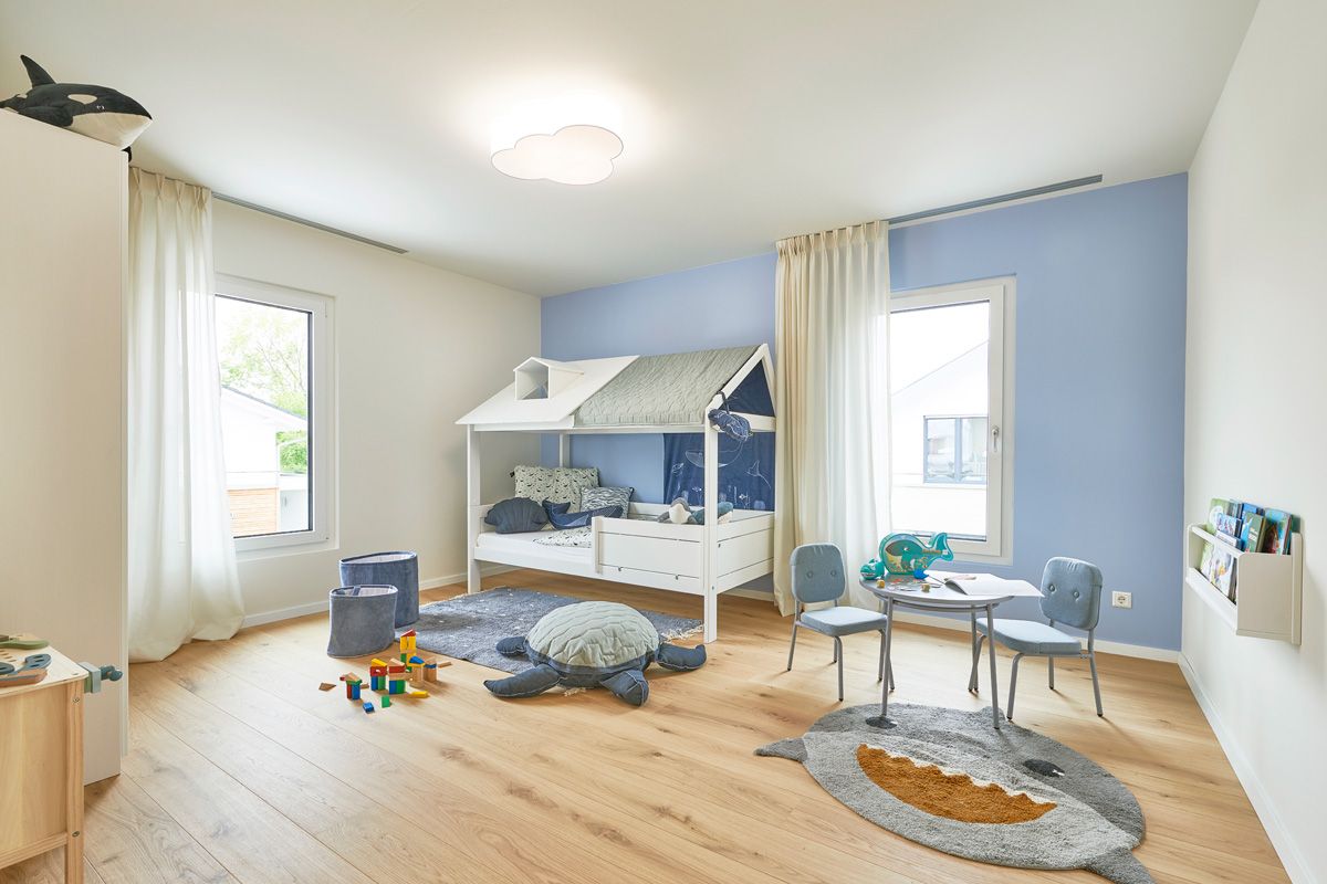 Das neue Musterhaus UrbanLife im Deutschen Fertighaus Center in Mannheim beeindruckt nicht nur mit seiner zeitgemäßen Gestaltung. Auch seine kompakte Planung, effiziente Haustechnik und zertifizierte Nachhaltigkeit zeichnen das Musterhaus aus, das nach den aktuellen Anforderungen der KfW förderfähig ist. Das Haus bietet auf zwei Geschossen rund 164 Quadratmeter Fläche und ist somit bestens geeignet für eine vierköpfige Familie. Ein separater Raum im Erdgeschoss kann wahlweise als Büro oder Gästezimmer genutzt werden.